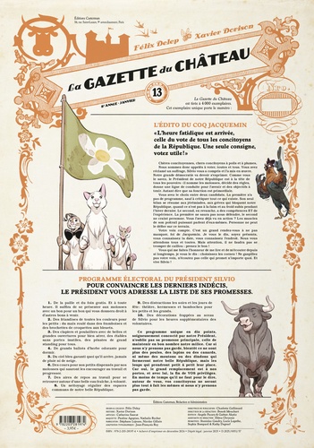 C'est une petite victoire pour les animaux : le taureau Silvio a dû se résoudre à organiser un vote... et donc à remettre en jeu son mandat ! Le jour du vote est enfin arrivé, et au terme de cette campagne où le président sortant a fait montre du plus vil populisme, il a réussi à rendre inaudible l'alternance prônée par Miss B et ses amis. Quant à Bella, la Première Dame, elle a disparu. Tuée par les loups, déplore Silvio... Mensonge ! , clame le rat Azélar, qui sort enfin de l'ombre pour faire éclater la vérité au grand jour : non content d'exploiter les animaux, Silvio se livre à un odieux troc-échange pour son unique profit. Ulcéré d'être confronté de la sorte, le taureau appelle les animaux au vote. Miss B et le lapin César tiennent-ils enfin la clé de la victoire ?