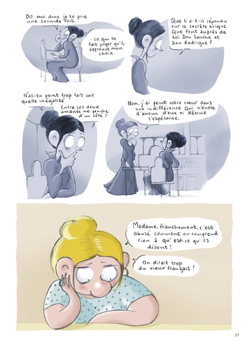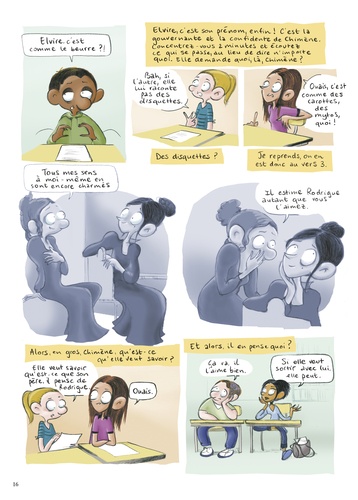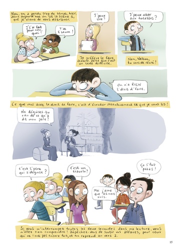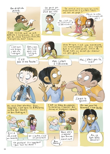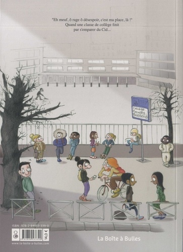 De nos jours, pas évident de lire Le Cid, quand on a treize ans ! Et pourtant, malgré les 382 ans qui les séparent, Chimène, Rodrigue et Don Diègue ne sont pas si éloignés de Naomy, Sarah-Lou, Brandon, Amine et de leurs acolytes ! Bienvenue dans le huis-clos de la salle de classe de 4e B. Entre frictions, moments de grâce, inepties et traits d'esprit, les élèves vont peu à peu apprivoiser la pièce et son langage suranné, à l'image de Lou qui s'exclame désormais "M'dame, quel outrage infâme, on m'a pris mon quatre couleurs ! " L'auteure, enseignante de Français au collège, livre ici le récit d'un apprentissage ardu mais non sans piquant, où les plus classiques ne sont pas forcément ceux que l'on croit ! Une bande dessinée tout public, plein d'humour et d'enseignements !
