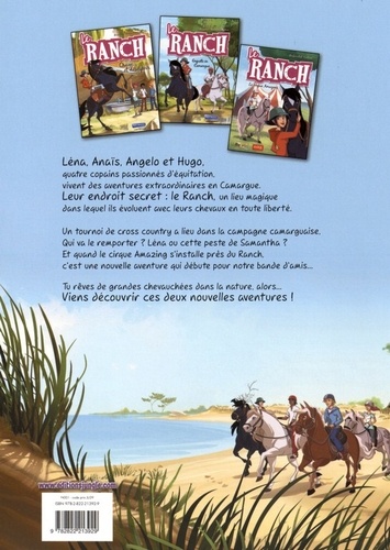 Léna, Anaïs, Angelo et Hugo, quatre copains passionnés d'équitation, vivent des aventures extraordinaires en Camargue. Leur endroit secret : le Ranch, un lieu magique dans lequel ils évoluent avec leurs chevaux en toute liberté. Un tournoi de cross country a lieu dans la campagne camarguaise, Qui va le remporter ? Léna ou cette peste de Samantha ? Et quand le cirque Amazing s'installe près du Ranch, c'est une nouvelle aventure qui débute pour notre bande d'amis... Tu rêves de grandes chevauchées dans la nature, alors... Viens découvrir ces deux nouvelles aventures !