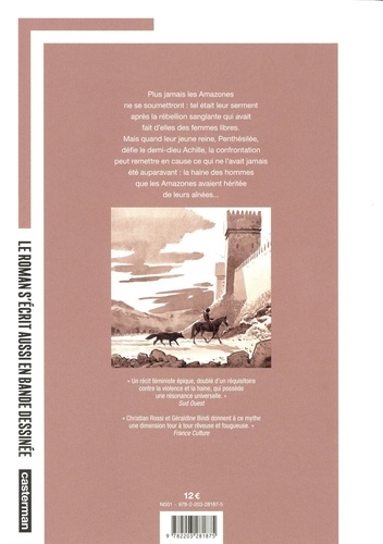 Plus jamais, depuis la rébellion sanglante qui avait fait d'elles des femmes libres, plus jamais les Amazones ne se soumettraient, comme elles se l'étaient juré. Mais quand leur jeune reine Penthésilée défie le demi-dieu Achille, cette confrontation inattendue remet en cause ce qui ne l'avait jamais été jusqu'à présent : la haine des hommes, héritée de leurs aînées... Dans cet album aux tons sépia remarquablement dessiné, Christian Rossi et Géraldine Bindi s'emparent du mythe des Amazones pour en faire, contre toute attente, le récit épique d'une guerre des sexes qui espère sa fin.