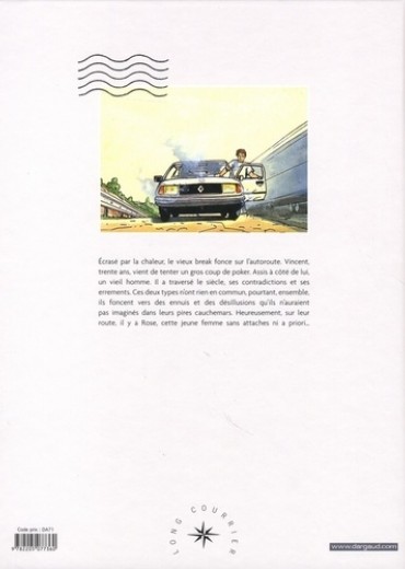 Ecrasé par la chaleur, le vieux break fonce sur l'autoroute. Vincent, trente ans, vient de tenter un gros coup de poker. Assis à côté de lui, un vieil homme. Il a traversé le siècle, ses contradictions et ses errements. Ces deux types n'ont rien en commun, pourtant, ensemble, ils foncent vers des ennuis et des désillusions qu'ils n'auraient pas imaginés dans leurs pires cauchemars. Heureusement, sur leur route, il y a Rose, cette jeune femme sans attaches ni a priori...