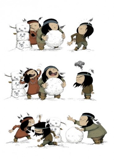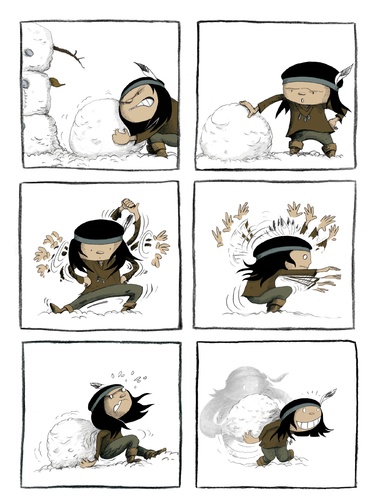 L'hiver pour un petit indien, c'est le temps des glissades, des totems de neige et de la chasse. Mais dans la forêt, il n'y a pas que des lapins.