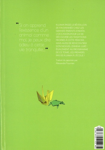 Kujima passe le réveillon de fin d'année chez les grands-parents d'Arata. L'occasion pour lui de découvrir les tradition propres à cette période.. mais aussi de rencontrer son nouvel ennemi juré ! Egalement au programme de ce tome, les premiers pas de Kujima à l'école !