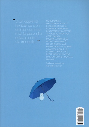 Nous sommes maintenant au mois de février, et Kujima continue de profiter des différentes activités typiques du Japon aux côtés d'Arata. Suguru, le frère d'Arata, passe bientôt ses concours, mais Kujima saura-t-il se tenir à carreau jusque là ? La famille Kôda et ce drôle d'oiseau doivent surmonter une nouvelle épreuve !