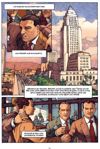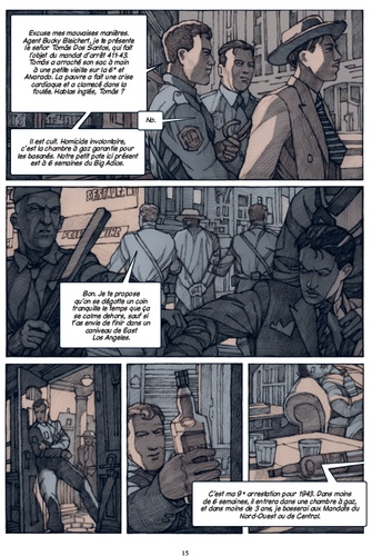 Célèbre dans le monde entier, le roman culte de James Ellroy est enfin adapté en bande dessinée. Los Angeles Police Department, 1946. Dwight " Bucky " Bleichert fête son premier jour aux Mandats, le prestigieux service où rêvent de travailler la plupart des flics de la Cité des Anges. Il fera équipe avec Leland " Lee " Blanchard, un collègue qui comme lui a été boxeur, et qu'il a déjà affronté sur un ring. Malgré les nondits entre eux, les deux hommes sympathisent. Ils ne savent pas encore qu'ils vont enquêter ensemble sur un crime qui va à la fois les rapprocher et bouleverser leurs existences : la mort atroce d'une jeune femme, Elizabeth " Betty " Short, surnommée le Dahlia Noir, dont on retrouve le corps mutilé dans un terrain vague, en janvier 1947... Ainsi débute l'un des plus fameux romans noirs de la littérature américaine des dernières décennies, à la fois polar haletant et portrait saisissant de Los Angeles, dans toute sa fascination trouble : Le Dahlia noir, de James Elroy. C'est le plus francophile des dessinateurs américains, Miles Hyman, déjà auteur avec Matz, dans la même collection, d'une adaptation de Nuit de fureur de Jim Thompson, qui en signe la mise en images, très inspiré par la ville de Los Angeles où il a personnellement vécu plusieurs années.