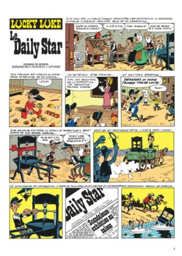 Ce personnage immortel parcourt depuis 1946 l'histoire de l'ouest américain. Il y a rencontré des personnages célèbres (Jesse James, Calamity Jane, Billy the Kid, Sarah Bernhardt...). Lucky Luke est l'homme des missions impossibles, le défenseur des pauvres, des veuves et des orphelins, bref le parfait héros ! Son cheval, Jolly Jumper, est un parfait compagnon de ce "poor lonesome cowboy". Les frères Dalton se dressent perpétuellement sur le chemin de Lucky Luke ce qui permet à ce dernier de les poursuivre continuellement et de les confier à la justice. Autre personnage traditionnel de la série : Rantanplan, le chien le plus bête du farwest qui a vécut de façon autonome 2 albums. Lucky Luke est, avec Astérix et Tintin, le plus célèbre personnage de l'histoire de la BD : cette série, accessible à tous, est devenu un mythe grâce à Morris et Goscinny. Ce personnage a fait l'essentiel de sa formidable carrière dans les pages de SPIROU, PILOTE et LE JOURNAL DE LUCKY LUKE. Une exploitation merchandising et audiovisuelle (dont aux Etats-Unis) a permis d'introduire Lucky Luke auprès d'une très large couche de la population et auprès de plusieurs générations de lecteurs. A noter qu'après la disparition de Goscinny, plusieurs scénaristes ont travaillé sur la série : Vicq, De Groot, Fauche et Léturgie, Lodewijk, Lo Hartog Van Banda et Vidal. L'essentiel des albums se trouvent chez Dupuis et Dargaud. , la nouveauté chez Lucky Productions.