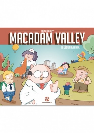 Macadam Valley, c'est la cité de tous les possibles, même les pires. Sous leurs airs "bonhomme", ses habitants vandalisent les conventions sociales, le sens commun et les valeurs familiales, bref tous les fondements du vivre-ensemble à la mode. Du professeur Schnött, dont on connaît mieux les lubies psychotiques que le cursus universitaire, au shérif prompt à mettre une orpheline de cinq ans sous les verrous, Macadam Valley semble avoir été fondée par un architecte délirant pour accueillir des individus bien trop "pétés du casque" pour être pris en charge par la psychiatrie traditionnelle. Ben Dessy, maître-d'oeuvre de ce chantier, dessine ses strips à l'aide d'un marteau piqueur et dynamite dans un grand éclat de rire les derniers restes de savoir-vivre et de bon goût de la civilisation. Préfacé par Gad ("Ultimex"), "Macadam Valley" a reçu le Golden Blog Awards 2012, et Ben Dessy vient de signer chez un éditeur important ... http : //macadamvalley. com/ Format : 215 x 170 mm, 72 pages noir et blanc, couverture souple à rabats.