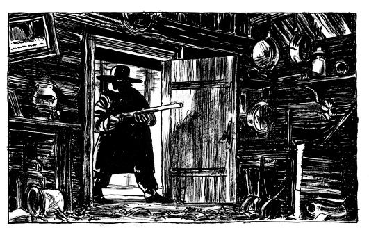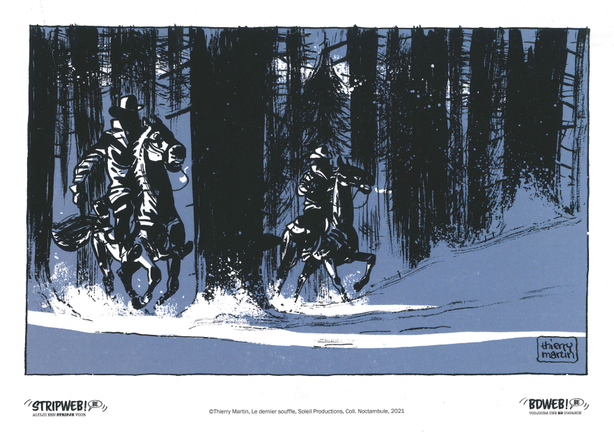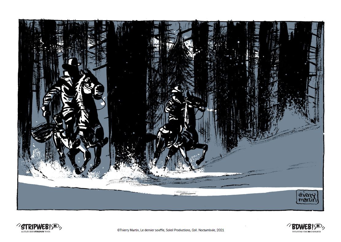 Speciale afmetingen voor dit tekstloze boek 28.3 x 18.8 x 2.8 cm deze strip telt 218 bladzijden en is volledig zonder tekst. de strip zit in een speciale cassette en heeft een bijzonder formaat. uniek is dat er geen tekst aan te pas komt. de strip leest als een thriller de opeenvolging van de scenes is subliem in beeld gebracht en tekst hoeft hier zeker niet. Ieder plaatje is een lust voor het oog en naarmate je verder leest wordt de spanning steeds groter. een western zoals het hoort ruw, geheimzinnig en spannend. daarenboven krijg je er een gelimiteerde ex-libris bij op 50 ex! korte inhoud Jagen en wraak, zeiden we, zien we ook in de context van de cinematografische referentiecodes: 'Honderd dollar voor een sheriff' (Henry Hathaway, 1969), 'Josey Wales, outlaw' (Clint Eastwood, 1976) of 'Ruthless' (Eastwood, 1992) zijn van dit soort, evenals de meeste van de bovengenoemde films. Het stille karakter van het album en de aanwezigheid van een naamloze man/held zullen op hun beurt zowel verwijzen naar de “Great Silence” als naar alle sferen die oscilleren tussen suspense en lyrische muziek. te beginnen met die van wijlen Ennio Morricone, inclusief het legendarische thema van 'The Man with the Harmonica', geassocieerd met de demiurgische en bijna onoverwinnelijke burgerwacht ('Once upon a time in the West', Sergio Leone 1968).