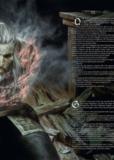 - Geralt de Riv ! répéta la magicienne en le regardant de derrière ses cils noirs. Comment es-tu entré ici ? Et avec quelle intention ? Tu n'as pas fait de mal à Berrant, j'espère ? - Non, je ne lui ai pas fait de mal. Yennefer, j'ai besoin de ton aide. - Un sorceleur, murmura-t-elle en se rapprochant encore et en resserrant son manteau sur elle. Et le premier que je vois de près n'est autre que le célèbre Loup Blanc. J'ai entendu toutes sortes de choses sur ton compte. Cet album illustre Le Dernier voeu, dernière nouvelle du premier tome de la saga littéraire Le Sorceleur, qui narre la rencontre entre Geralt et Yennefer. Alors qu'ils s'adonnent à une paisible partie de pèche, Geralt et Jaskier libèrent accidentellement un djinn enfermé dans une amphore. Le troubadour n'a le temps de formuler qu'un voeu avant d'être violemment agressé par la créature déchaînée. C'est vers la cité voisine, Rinde, que Geralt transporte son compagnon de route dans un état critique. On conseille alors au sorceleur de rencontrer la seule personne à même de dispenser une formule magique curative, Yennefer de Vengerberg. Geralt ne le sait pas encore, mais il va sceller son destin à celui de cette magicienne... La rencontre d'un auteur et d'un artiste. Succès mondial du jeu vidéo, série événement sur Netflix, l'univers du Sorceleur, créé par Andrzej Sapkowski, inspire le dessinateur Mikaël Bourgouin. Une immersion inédite dans le monde de Geralt de Riv.