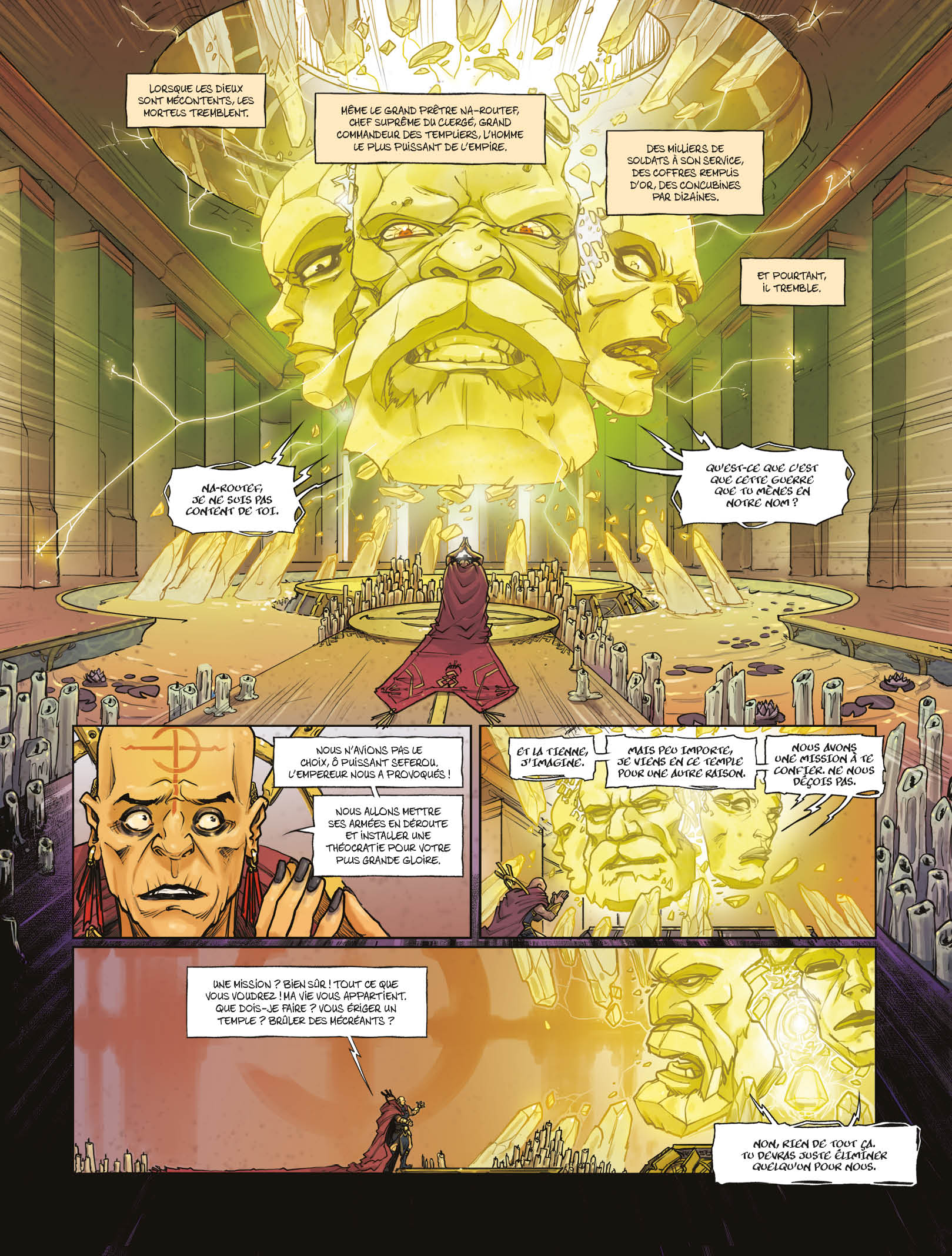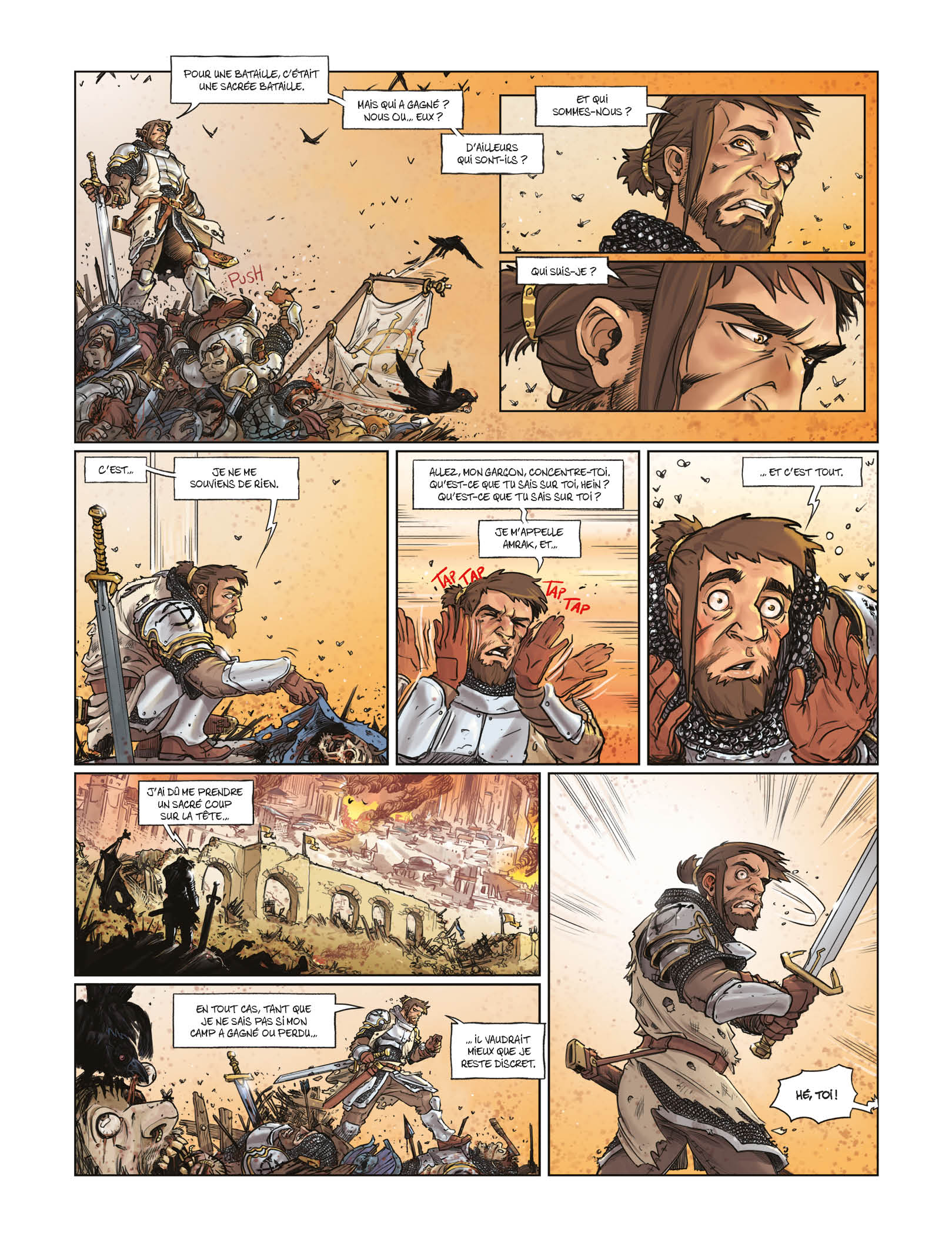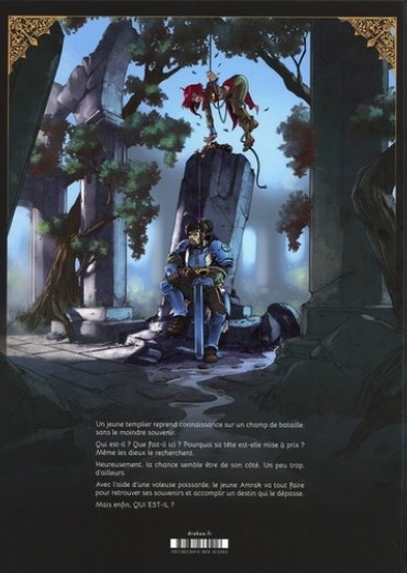 La chance, ce n'est que de la malchance à l'envers. Un jeune templier reprend connaissance sur un champ de bataille, sans le moindre souvenir. Qui est-il ? Que fait-il ici ? Pourquoi sa tête est-elle mise à prix, alors que les dieux eux-mêmes semblent le rechercher ? Heureusement, la chance semble être de son côté. Un peu trop, d'ailleurs. Avec l'aide d'une voleuse poissarde, le jeune Amrak va tout faire pour retrouver ses souvenirs et accomplir un destin qui semble le dépasser. Mais enfin, QUI EST-IL ?