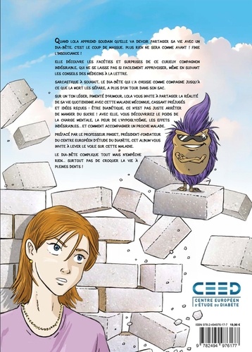 Quand Lola apprend soudain qu'elle va devoir partager sa vie avec un dia-bête c'est le coup de massue plus rien ne sera comme avant ! Finie insouciance ! Elle découvre les facéties et surprises de ce curieux compagnon indésirable, qui ne se laisse pas si facilement apprivoiser même en suivant les conseils des médecins à la lettre. Sarcastique à souhait, le dia-bête qui l'a choisie comme compagne jusqu'à ce que la mort le sépare, a plus d'un tour dans son sac. Sur un ton léger, pimenté d'humour, Lola vous invite à partager la réalité de sa vie quotidienne avec cette maladies méconnues, cassant préjugés et idées reçues : être diabétique ce n'est pas juste arrêter de manger du sucre ! Avec elle, vous découvrirez le poids de la charge mentale, la peur de l'hypoglycémie, les effets indésirables... et comment accompagner un proche malade. Préfacé par le professeur Pinget, président-fondateur du centre européen d'étude du diabète, cet album vous invite à lever le voile sur cette maladie. Le dia-bête complique tout mais n'empêche rien... surtout pas de croquer la vie à pleines dents !