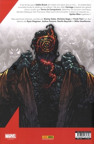 Il est temps pour Eddie Brock de mettre son père dos au mur... en prétendant connaître toute la vérité sur lui-même ! De son côté, Carnage prépare son grand retour, tandis que Terrax le Conquérant, détenteur du pouvoir cosmique, cide d'attaquer San Francisco. Mais avant de triompher, il devra se mesurer au... Spider-Man supérieur !