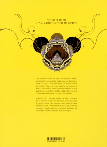 Une mission facile et très bien payée ? Mark, consultant en explosifs, débarque au Quanlom, pays d'Asie du Sud-Est, pour un travail court et simple. Tout est vrai, jusqu'à sa rencontre avec "Le Divin", deux jumeaux leaders d'une guérilla, deux enfants-soldats âgés de neuf ans qui seraient doués de pouvoirs surnaturels... Inspirés par l'histoire véridique des jumeaux de la "God's Army" en Birmanie, ainsi que par le phénomène des contractants occidentaux parachutés en terre inconnue, Boaz Lavie et les jumeaux Hanuka délivrent un récit puissant et troublant, formidablement mis en images.