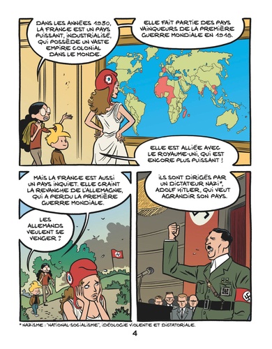 Entrée en guerre contre l'Allemagne en 1939, la France reconnaît sa défaite en 1940 par la voix de son nouveau dirigeant, le maréchal Pétain, qui entre en collaboration avec les Allemands. Mais un autre militaire, le général de Gaulle, appelle les Français à résister. Le pays sort finalement vainqueur en 1945. Comment chaque pays a-t-il vécu la Seconde Guerre mondiale ? L'Allemagne nazie. La France entre collaboration et résistance. La Belgique en terrain de guerre.