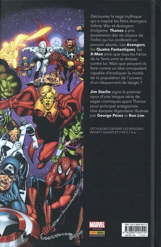 Thanos a réussi à réunir les Pierres de l'Infni. Il dispose désormais d'un pouvoir quasi divin, et décide d'offrir à la Mort une preuve de son amour : la moitié des âmes de l'univers ! Face à ce génocide cosmique, les héros de la Terre ayant survécu, se réunissent derrière Adam Warlock et le Silver Surfer. Mais est-ce que les Avengers, les Quatre Fantastiques et les X-Men épargnés ont la moindre chance face à Thanos et son Gant de l'Infini ? Découvrez-le dans une saga riche en rebondissements. Cet album fait partie des must-have, des récits essentiels et accessibles destinés à tous les amateurs de super-héros. Identifiés clairement par un logo sur la couverture, les lecteurs repéreront immédiatement ces incontournables pour se constituer leur bibliothèque Marvel idéale. Le Gant de l'Infini est l'un des comics les plus importants de l'histoire de la Maison des Idées et il représente encore chaque année l'une des meilleures ventes de Marvel aux Etats-Unis.