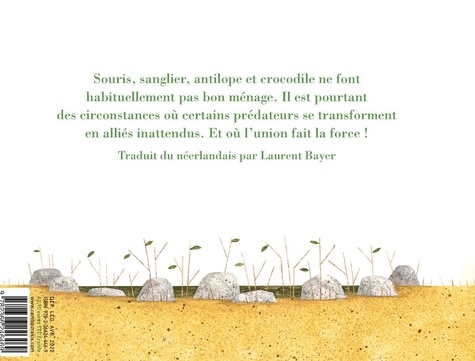 Après le succès de "Où est le dragon ? ", "L'échappée du chimpanzé" et "L'île d'Eléphant", voici une nouvelle aventure orchestrée par Leo Timmers dans un format tout carton. Différents animaux poursuivis par des prédateurs trouvent refuge auprès d'un crocodile étonnamment bienveillant. Une course-poursuite riche en entraide et en rebondissements toujours habilement mis en scène.