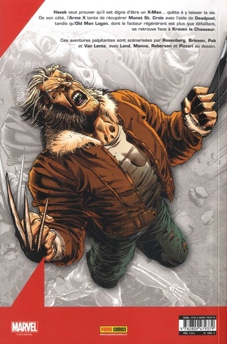 Have veut prouver qu'il est digne d'être un X-Man... quitte à y laisser la vie. De son côté, l'Arme X tente de récupérer Monet St. Croix avec l'aide de Deadpool, tandis qu'Old Man Logan, dont le facteur régénérant est plus que défaillant, se retrouve face à Kraven le Chasseur. Ces aventures palpitantes sont scénarisées par Rosenberg, Brisson, Pak et Van Lente, avec Land, Manna, Roberson et Picari au dessin.