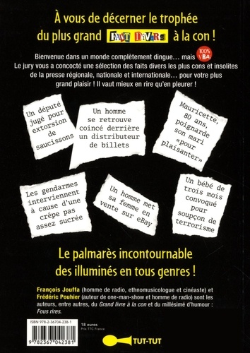 Bienvenue dans un monde complètement dingue... mais Le jury vous a concocté une sélection des faits divers les plus cons et insolites de la presse régionale, nationale et internationale... pour votre plus grand plaisir ! Il vaut mieux en rire qu'en pleurer !