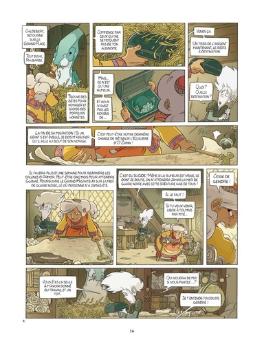 Sur la planète O'Zhinn, ravagée par la malédiction de la glaire noire, vivaient des géants maintenant disparus. Tous les 200 ans, ceux-ci sortaient de leur longue hibernation pour entamer une longue migration vers le nord. Décimés par les hommes, leur histoire est désormais une légende qui n'existe plus que dans quelques livres. Quand un jour, un dernier géant endormi sous terre se réveille à la surprise de tous, la chasse à la bête reprend. Odette, vieille dame excentrique et mystérieuse ayant la conviction que le fléau de la glaire noire est lié à la disparition des géants, se met en quête de celui-ci pour le protéger des hommes à tout prix. Avec le craintif mais dévoué Childebert à ses côtés, elle accompagnera la gigantesque créature dans son périple aux confins du royaume, dans l'espoir de trouver un remède à son monde en déclin.