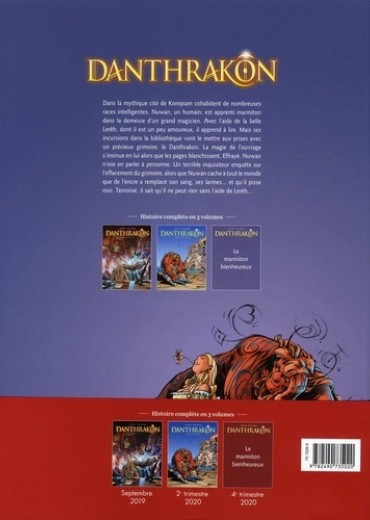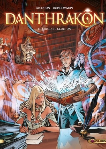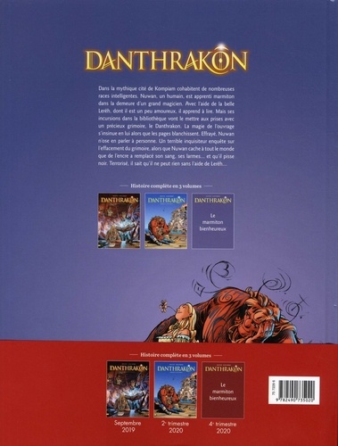 Dans la mythique cité de Kompiam cohabitent de nombreuses races intelligentes. Nuwan, un humain, est apprenti marmiton dans la demeure d'un grand magicien. Avec l'aide de la belle Lerëh, dont il est un peu amoureux, il apprend à lire. Mais ses incursions dans la bibliothèque vont le mettre aux prises avec un précieux grimoire, le Danthrakon. La magie de l'ouvrage s'insinue en lui alors que les pages blanchissent. Effrayé, Nuwan en parler à personne. Un terrible inquisiteur enquête sur l'effacement du grimoire, alors que Nuwan cache à tout le monde que de l'encre a remplacé son sang, ses larmes... et qu'il pisse noir. Terrorisé, il sait qu'il ne peut rien sans l'aide de Lerëh...