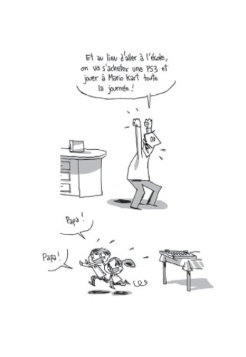 S’acharner sur son fils pour remporter une partie de jeu vidéo. Redoubler de mauvaise foi envers sa fille de 7 ans après avoir perdu à cache-cache. Pire, inventer une histoire de tueur psychopate à la tombée de la nuit… Guy Delisle, un mauvais père ? Non, un auteur de bande dessinée qui sait puiser l’imagination là où elle se trouve, avec un sens aigu de l’observation et une bonne dose d’autodérision.