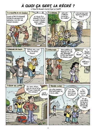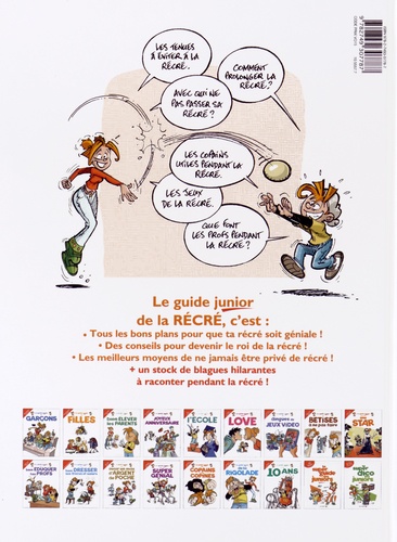 Dès qu'ils entendent la sonnerie, tous les écoliers ont le même réflexe : ils sortent de la salle de classe en courant. Et pour cause : c'est l'heure de la récré ! Le moment qu'ils attendent tous le coeur battant, celui où l'on n'est pas forcé de se farcir les barbants théorèmes de math, où l'on peut jouer au foot sans se faire enguirlander par le prof d'EPS, où les filles viennent se tenir au courant des derniers ragots, où les plus costauds viennent aussi embêter les plus petits... Un lieu qui donne naissance à des moments de gloire. A quelques drames aussi. Car dans la cour, on n'est pas à l'abri d'une honte monumentale... Ce nouveau Guide Junior t'apprendra tous les secrets pour devenir le vrai caïd de la récré, celui que toutes les filles adorent, et que les autres garçons respectent !