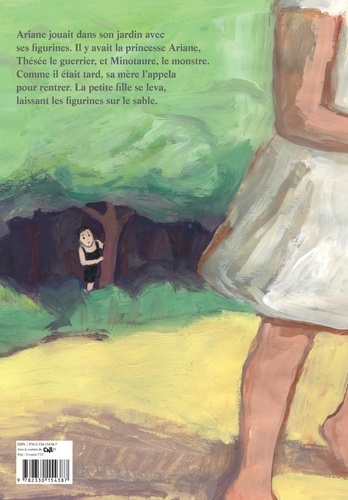 Ariane jouait dans son jardin avec ses figurines. Il y avait la princesse Ariane, Thésée le guerrier, et Minotaure, le monstre. Comme il était tard, sa mère l'appela pour rentrer. La petite fille se leva, laissant les figurines sur le sable.