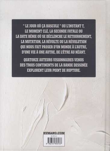 14 auteurs internationaux, tous reconnus, et tous différents, nous présentent 13 histoires. Une ode à la création qui exprime la richesse inépuisable du neuvième Art. "Le jour où ça bascule " : ces quelques mots ont inspiré quatorze auteurs internationaux, tous reconnus, et tous différents. Le résultat est drôle, dramatique, terrifiant ou mystérieux. Mais il est surtout une ode à la création qui exprime la richesse inépuisable du neuvième Art. Répondant à l'exigence d'innovation graphique défendue depuis 40 ans par Les Humanoïdes Associés, cette anthologie anniversaire est le fruit du développement international de la maison d'édition, la seule française présente directement sur les territoires américain et japonais.