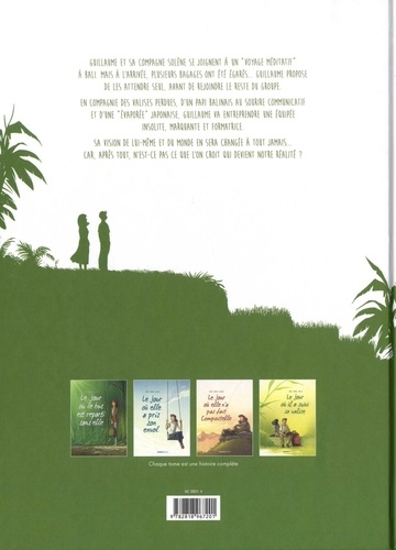 Une "feel good" BD pleine d'optimisme ! Guillaume et sa compagne Solène se joignent à un "voyage méditatif" à Bali. Mais à l'arrivée, plusieurs bagages ont été égarés... Guillaume propose de les attendre seul, avant de rejoindre le reste du groupe. En compagnie des valises perdues, d'un papi balinais au sourire communicatif et d'une "évaporée" japonaise, Guillaume va entreprendre une équipée insolite, marquante et formatrice. Sa vision de lui même et du monde en sera changée à tout jamais... car après tout, n'est ce pas ce que l'on croit qui devient notre réalité ?