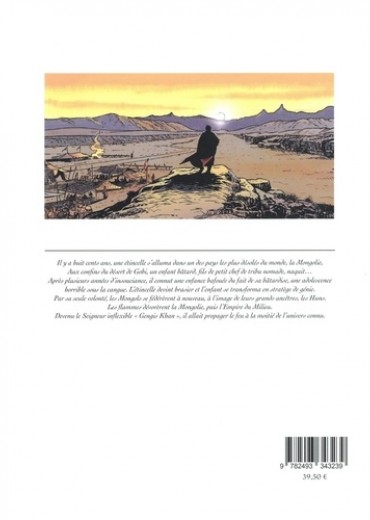 En Mongolie au 13ème siècle un chef de clan légendaire va conquérir un immense empire. Cette BD retrace le parcours de cet intraitable guerrier.