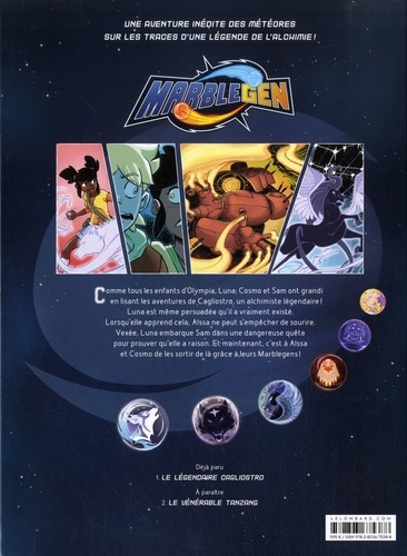 Comme tous les enfants d'Olympia, Luna, Cosmo et Sam ont grandi en lisant les aventures de Cagliostro, un alchimiste légendaire ! Luna est même persuadée qu'il a vraiment existé. Lorsqu'elle apprend cela, Aïssa ne peut s'empêcher de sourire. Vexée, Luna embarque Sam dans une dangereuse quête pour prouver qu'elle a raison. Et maintenant, c'est à Aïssa et Cosmo de les sortir de là à l'aide de leurs Marblegens !