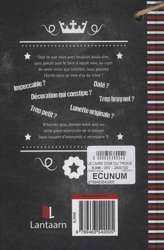 Tout ce que vous avez toujours voulu dire, sans jamais oser le faire à haute voix, au sujet de votre visite aux toilettes, vous pourrez l'écrire dans ce livre d'or du trône ! N'hésitez plus, donnez votre avis sur cette pièce essentielle de la maison (sous couvert d'anonymat si nécessaire ! ).