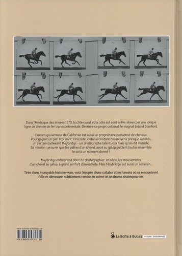 Dans l'Amérique des années 1870, la côte ouest et la côte est sont enfin reliées par une longue ligne de chemin de fer transcontinentale. Derrière ce projet colossal, le magnat Leland Stanford. L'ancien gouverneur de Californie est aussi un propriétaire passionné de chevaux. Pour gagner un pari étonnant, il recrute, en lui accordant des moyens presque illimités, un certain Eadweard Muybridge - un photographe talentueux mais qu'on dit instable. Sa mission : prouver que les pattes d'un cheval lancé au galop quittent toutes ensemble le sol à un moment donné ! Muybridge entreprend donc de photographier, en série, les mouvements d'un cheval au galop, à grand renfort d'inventivité. Mais Muybridge est aussi un assassin... Tirée d'une incroyable histoire vraie, voici l'épopée d'une collaboration funeste où se rencontrent folie et démesure, subtilement remise en scène tel un drame shakespearien.