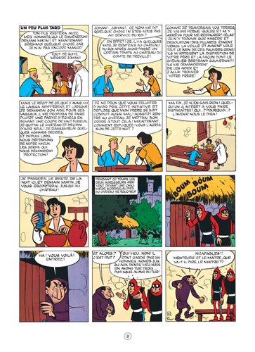 Johan, d'abord page puis jeune chevalier, habite le palais d'un roi débonnaire et bon vivant dans un Moyen Age de fantaisie. Luttant contre les seigneurs félons et les envahisseurs vikings, il vit des aventures pleines d'humour et d'action en compagnie de Pirlouit, un petit bonhomme facétieux et gourmand monté sur une chèvre aussi irascible que son maitre.
