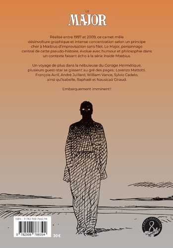 Réalisé entre 1997 et 2009, ce carnet mêle désinvolture graphique et intense concentration selon un principe cher à Moebius d'improvisation sans filet. Le Major, personnage central de cette pseudo-histoire, évolue avec humour et philosophie dans un contexte faisant écho à la série Inside Moebius. Un voyage de plus dans la nébuleuse du Garage Hermétique, plusieurs guest-star se glissent au gré des pages ? : Lorenzo Mattotti, François Avril, André Juillard, William Vance, Sylvio Cadelo, ainsi qu'Isabelle Giraud et leurs enfants, Raphaël et Nausicaä. Embarquement imminent !