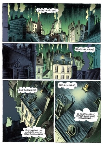 Le Corbeau, héros de feuilletons à deux sous, veut qu'on l'immortalise définitivement en génie du Mal. C'est en harcelant Fortuné d'Hypocondre, plumitif vaguement anarchiste, qu'il va retrouver la trace de son auteur-père, Homère Saint-Illiède, et tout faire pour acquérir une identité... Avec " Le Mangeur d'histoires ", une aventure rocambolesque en hommage aux feuilletons d'antan, Fabrice Lebeault, l'auteur de " Horologiom ", crée une ambiance tout à la fois délicieusement surannée et, graphiquement moderne, et se joue avec ironie du destin de ses personnages.
