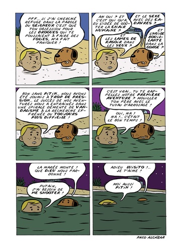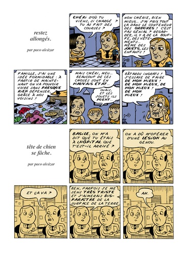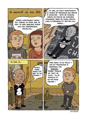 Le manuel de ma tête réunit toutes les histoires publiées par Alcázar pendant une décennie dans diverses publications. Cet auteur est déjà une référence pour les dessinateurs des années 1ç90. Son style acide et aiguisé, son cynisme critique et aigu, son grand style graphique et littéraire, le tout passé à travers un profond tamis d'humour noir. L'humour dominant évite que ses histoires ne deviennent désagréablement sordides. Elles offrent simplement une vision nouvelle et acide de cette réalité que nous tous avons toujours considéré normale.