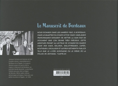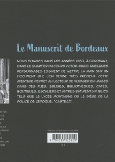 Une bande dessinée dont l'intrigue policière permet de découvrir la ville de Bordeaux. Les années 80, à Bordeaux, dans le quartier du cours Victor Hugo. Quelques personnages essayent de mettre la main sur un document que l'on devine très précieux. Cette aventure permet au lecteur de voyager en images dans des rues, églises, bibliothèques, cafés, boutiques, escaliers et autres bâtiments publics tels que le lycée Montaigne ou le siège de la police de l'époque, "Castéja" .