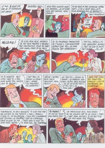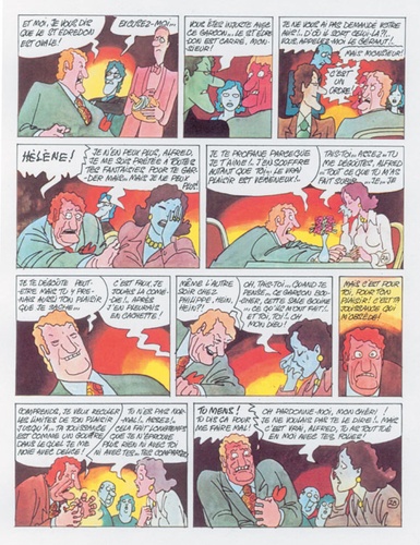 à la mode avec une invraisemblable précision. Bourgeois, militaires, ratés, tarés, paumés de la nuit, du petit matin et de la vie, révolutionnaires en peau de lapin, gavés qui prennent leurs troubles digestifs pour des crises de conscience, composent la galerie de Lauzier. Ils sont tous là pour déranger, étonner, et surtout, oui surtout, faire rire et de quel rire ! Lauzier se fait haïr et se fait admirer. Je vous le disais, c'est un véritable humoriste, et je tremble à l'idée de tous ceux qui vont me haïr quand ils sauront à quel point je l'admire. (4e trimestre 1976), René Goscinny.