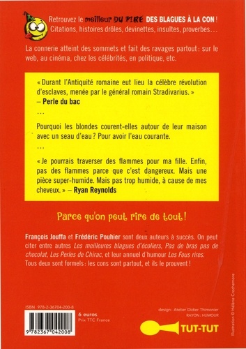Retrouvez le meilleur du pire des blagues à la con Citations, histoires drôles, devinettes, insultes, proverbes... La connerie atteint des sommets et fait des ravages partout : sur le web, au cinéma, chez les célébrités, en politique, etc.