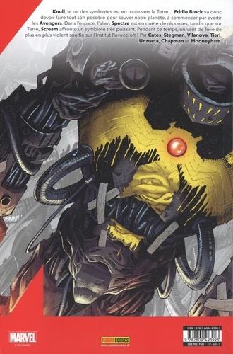 Knull, le roi des symbiotes est en route vers la Terre... Eddie Brock va donc devoir faire tout son possible pour sauver notre planète, à commencer par avertir les Avengers. Dans l'espace, Italien Spectre est en quête de réponses, tandis que sur Terre, Stream affronte un symbiote très puissant. Pendant ce temps, un vent de folie de plus en plus violent souffle sur l'Institut Ravencroft ! Par Cates, Stegman, Vilanova, Tieri, Unzueta, Chapman et Mooneyham.