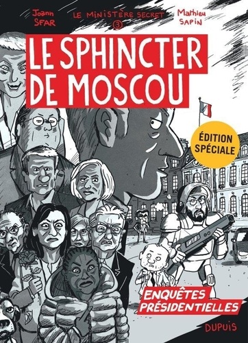 2021 levait le voile sur l'incroyable organisation du Ministère Secret, une division très discrète du gouvernement qui accueille les anciens chefs d'Etat et intervient lorsque des menaces non conventionnelles mettent en péril le délicat équilibre du monde civilisé. François Hollande, Nicolas Sarkozy et Mathieu Sapin en sont les principaux héros de la République ! 2022 rebat les cartes et notre sympathique triumvirat remet le couvert pour révéler au grand public les turpitudes et secrets incroyables des dessous de la très médiatique campagne présidentielle. Vous êtes prévenus, il vous sera désormais impossible de nier que vous connaissez la vraie vérité ! Conçu en partenariat avec l'équipe (très sérieuse) du journal Libération qui prépublie quotidiennement les pages-révélations spectaculaires de ce Ministère Secret hors-série explosif, cet ouvrage suit jour après jour, heure après heure, les protagonistes de la BD dans les alcôves, arcanes et autres corridors secrets des élections. Si vous voulez tout savoir sur le bracelet électronique de Sarkozy ou l'incroyable logiciel Bygmalion, une seule destination possible : Le Ministère Secret, Enquêtes présidentielles ! Quand Joann Sfar et Mathieu Sapin, les auteurs de la série-phare Le Ministère Secret, mettent leur talent au service de l'information politique, qu'elle soit bonne, mauvaise ou loufoque à entendre, il y a tout à parier qu'elle soit vraie (ou pas). Allez savoir.