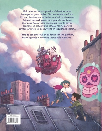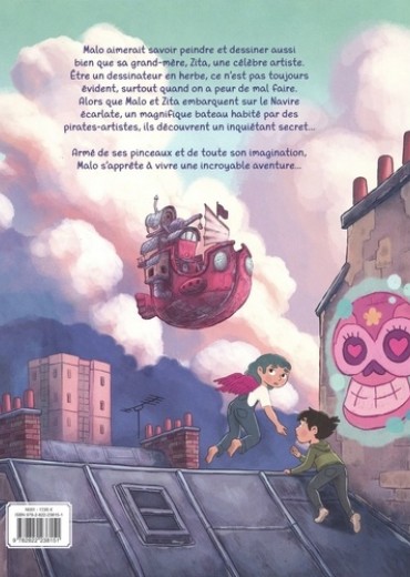 Malo aimerait savoir peindre et dessiner aussi bien que sa grand-mère, Zita, une célèbre artiste. Etre un dessinateur en herbe, ce n'est pas toujours évident, surtout quand on a peur de mal faire. Alors que Malo et Zita embarquent sur le Navire écarlate, un magnifique bateau habité par des pirates-artistes, ils découvrent un inquiétant secret... Armé de ses pinceaux et de toute son imagination, Malo s'apprête A vivre une incroyable aventure...