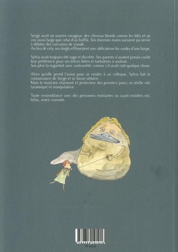 Serge avait un sourire ravageur, des cheveux blonds comme les blés et un cou aussi large que celui d'un buffle. Ses énormes mains auraient pu servir à débiter des carcasses de viande. Au lieu de cela, ses doigts effleuraient avec délicatesse les cordes d'une harpe. Sylvia avait toujours été sage et discrète. Ses parents n'avaient jamais caché leur préférence pour ses frères bêtes et turbulents à souhait. Son père la regardait avec contrariété, comme s'il avait raté quelque chose. Alors qu'elle prend l'avion pour se rendre à un colloque, Sylvia fait la connaissance de Serge et se laisse séduire. Mais le musicien charmant et protecteur des premiers jours, se révèle vite tyrannique et manipulateur. Toute ressemblance avec des personnes existantes ou ayant existé est, hélas, assez courante.