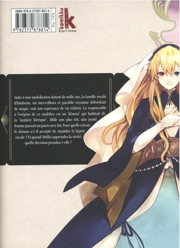 Incapable d'utiliser la magie, elle est la seule à pouvoir briser la malédiction qui touche la famille royale ! Suite à une malédiction datant de mille ans, la famille royale d'Almheim, un merveilleux et paisible royaume débordant de magie, voit son espérance de vie réduite. Le responsable à l'origine de ce maléfice est un "démon" qui habitait de la "matière féérique". Mille ans plus tôt, une jeune femme passait un pacte avec lui. Pour quelle raison le démon a-t-il accepté de maudire la lignée royale ? Et quand Mellia apprendra la vérité, quelle décision prendra-t-elle ?