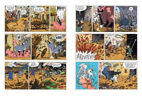 Le chasseur de rêves s'ennuie. Heureusement, Sancho a rapporté à son ami les contes des Mille et Une Nuits. D'abord, le chasseur se méfie : je ne vais pas lire ça, ce ne sont que des histoires de princesses ! Mais Sancho commence à raconter... et soudain, le tapis du salon s'anime et pffioouuu, il les emporte vers d'envoûtantes aventures orientales, des dunes infinies et des palais merveilleux !