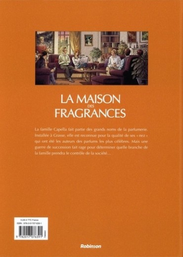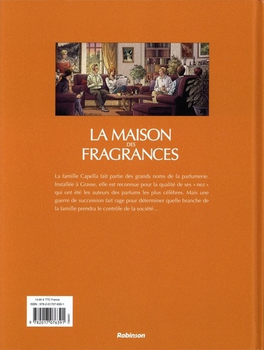 La famille Capella fait partie des grands noms de la parfumerie. Installée à Grasse, elle est reconnue pour la qualité de ses " nez " qui ont été les auteurs des parfums les plus célèbres. Mais une guerre de succession fait rage pour déterminer quelle branche de la famille prendra le contrôle de la société... Lorsque Corbeyran, l'incontournable scénariste de BD, éclectique et prolifique auteur de plus de 400 titres (dont Le Chant des Stryges ou la saga à succès Châteaux Bordeaux), rencontre Christophe Mot, professionnel de la parfumerie et grand fan de BD, cela donne naissance à La Maison des Fragrances, un thriller économique à mi-chemin entre Largo Winch et Les Maîtres de l'Orge. Les nombreux rebondissements familiaux, professionnels et sentimentaux de la famille Capella - à la tête de l'une des plus célèbres maisons de composition de parfums - prennent vie grâce au talent du dessinateur Piotr Kowalski.