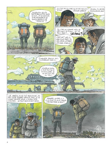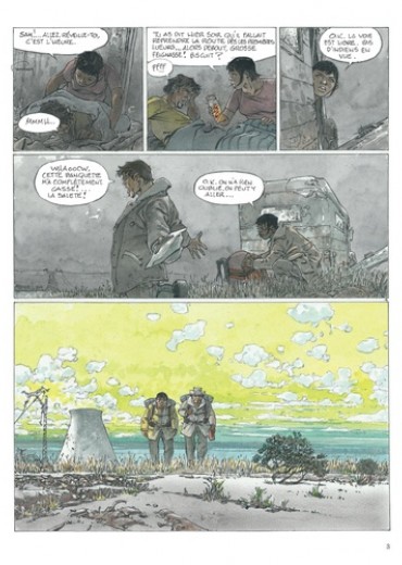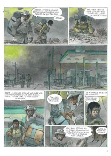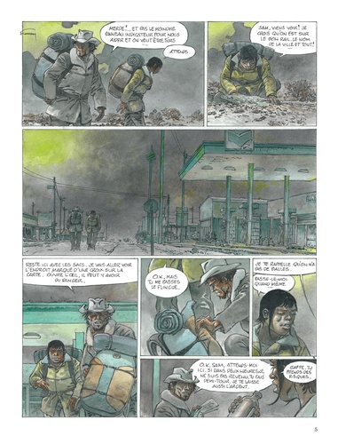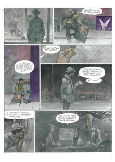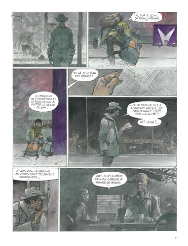 Un couple s'arrête dans une ville après une harassante traversée du désert. Epuisés mais déterminés à franchir la frontière, ils découvrent peu à peu l'atmosphère lugubre de l'endroit qui n'augure rien de bon. Les habitants ne parlent pas, bougent à peine, tels des cadavres en sursis. La cité est en vérité sous le joug d'un inquiétant trafic par-delà les hautes grilles qui la condamnent et l'isolent du reste du monde s'étend un territoire cauchemardesque, royaume solitaire du Passeur... Un piège dont nul ne s'évade, sinon au prix de sa propre vie. Pour sa nouvelle collaboration avec son fils Yves, Hermann, consacré par le Grand Prix d'Angoulême 2016 pour l'ensemble de son oeuvre, nous plonge dans la noirceur d'un monde dépossédé de son humanité. Avec le style puissant et les couleurs denses qui ont fait sa renommée, l'auteur nous livre un thriller à l'ambiance inquiétante et aux cieux opaques, où le malaise guette à chaque coin de page. Et le lecteur, pourtant seul rescapé de ce récit, n'a aucune chance d'en ressortir indemne.