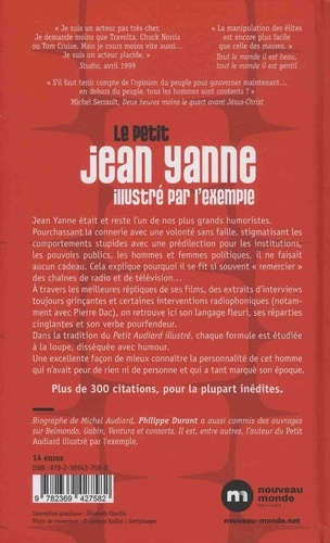 Jean Yanne était et reste l'un de nos plus grands humoristes. Pourchassant la connerie avec une volonté sans faille, stigmatisant les comportements stupides avec une prédilection pour les institutions, les pouvoirs publics, les hommes et femmes politiques, il ne faisait aucun cadeau. Cela explique pourquoi il se fit si souvent " remercier " des chaînes de radio et de télévision... A travers les meilleures répliques de ses films, des extraits d'interviews toujours grinçantes et certaines interventions radiophoniques (notamment avec Pierre Dac), on retrouve ici son langage fleuri, ses réparties cinglantes et son verbe pourfendeur. Dans la tradition du Petit Audiard illustré, chaque formule est étudiée à la loupe, disséquée avec humour. Une excellente façon de mieux connaître la personnalité de cet homme qui n'avait peur de rien ni de personne et qui a tant marqué son époque. Plus de 300 citations, pour la plupart inédites.