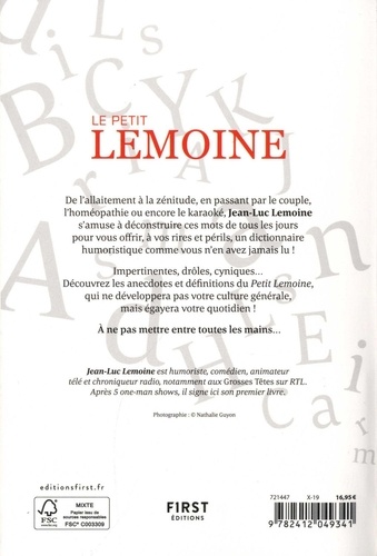 De l'allaitement à la zénitude, en passant par le couple, l'homéopathie ou encore le karaoké, Jean-Luc Lemoine s'amuse à déconstruire ces mots de tous les jours pour vous offrir, à vos rires et périls, un dictionnaire humoristique comme vous n'en avez jamais lu ! Impertinentes, drôles, cyniques... Découvrez les anecdotes et définitions du Petit Lemoine, qui ne développera pas votre culture générale, mais égayera votre quotidien ! A ne pas mettre entre toutes les mains...